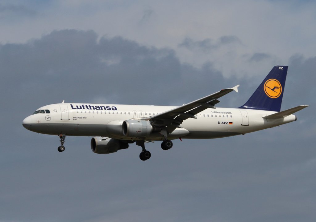 Lufthansa A 320-211 D-AIPZ "Erfurt" bei der Landung in Frankfurt am Main am 16.08.2012