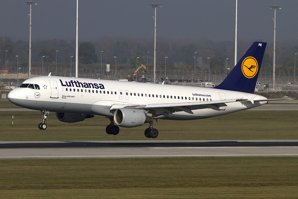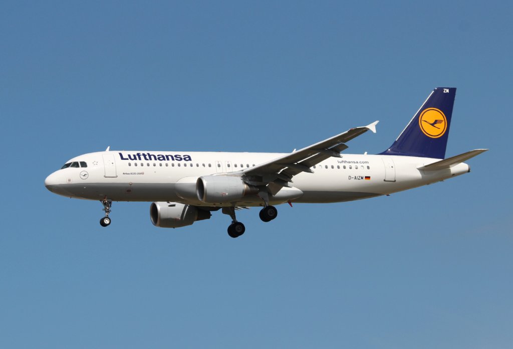 Lufthansa A 320-214 D-AIZM bei der Landung in Frankfurt am Main am 16.08.2012