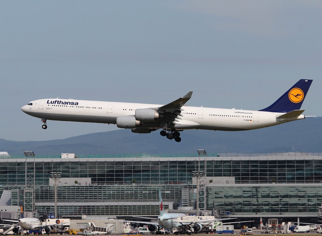 Lufthansa A 340-642 D-AIHH "Wiesbaden" bei der Landung in Frankfurt am Main am 16.08.2012