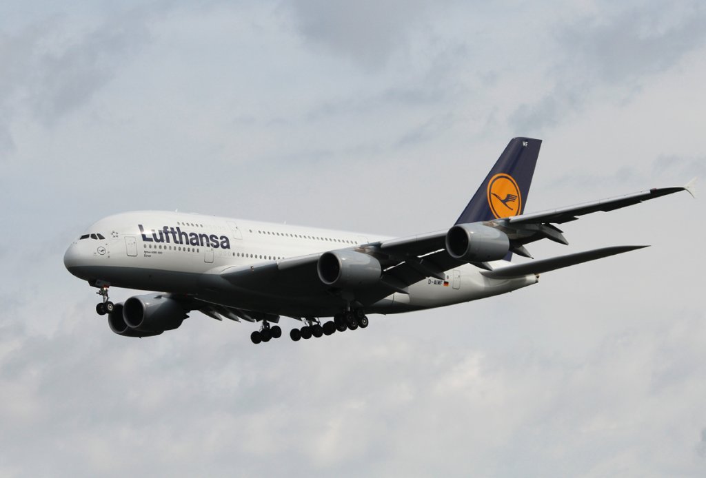 Lufthansa A 380-841 D-AIMF "Zürich" bei der Landung in Frankfurt am Main am 16.08.2012