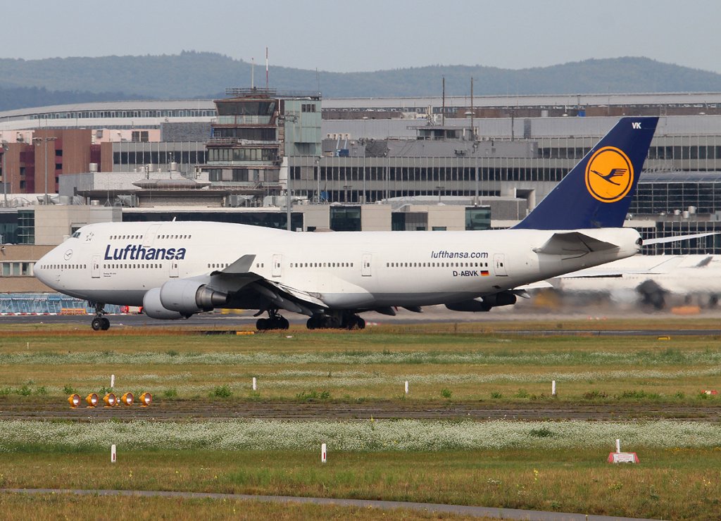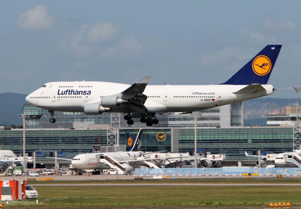 Lufthansa B 747-430 D-ABVP "Bremen" bei der Landung in Frankfurt am Main am 16.08.2012