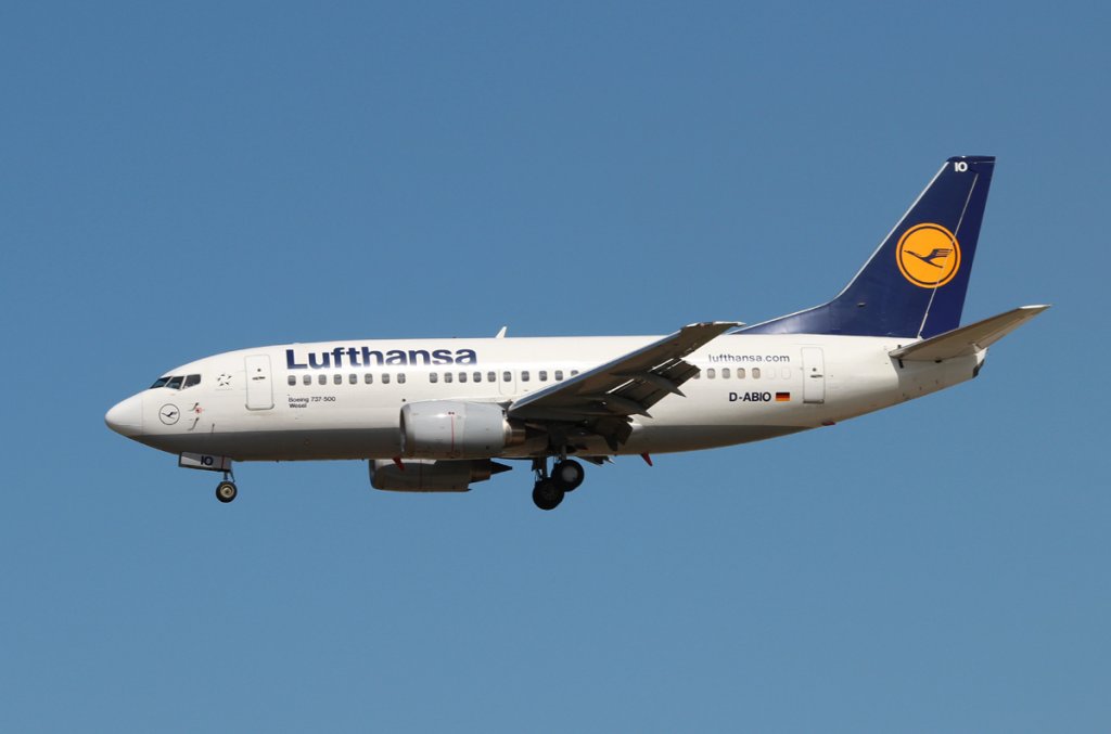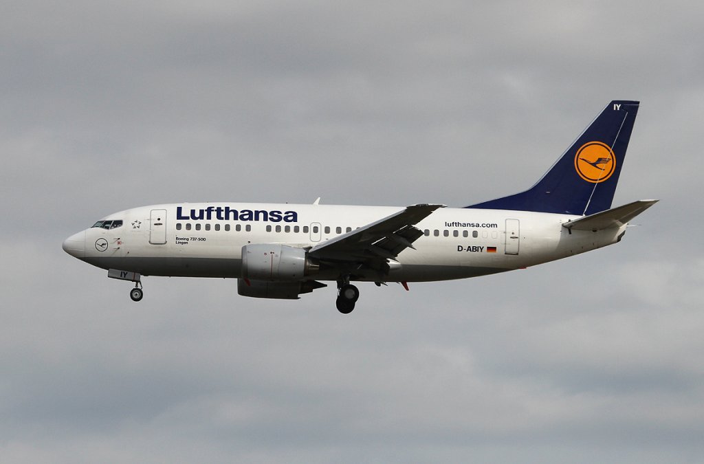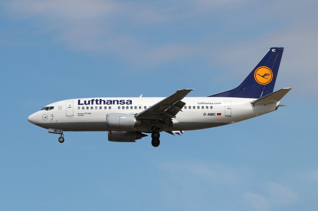 Lufthansa B 737-530 D-ABIV "Lingen" bei der Landung in Frankfurt am Main am 16.08.2012