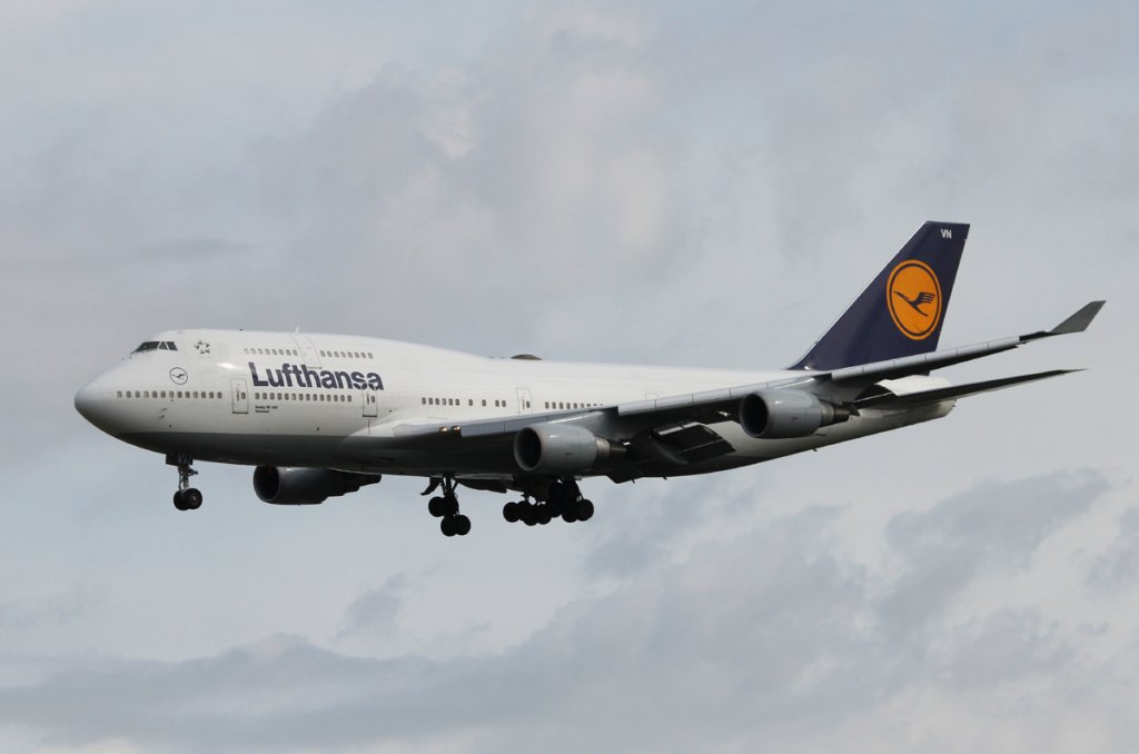 Lufthansa B 747-430 D-ABVN "Dortmumd" bei der Landung in Frankfurt am Main am 16.08.2012