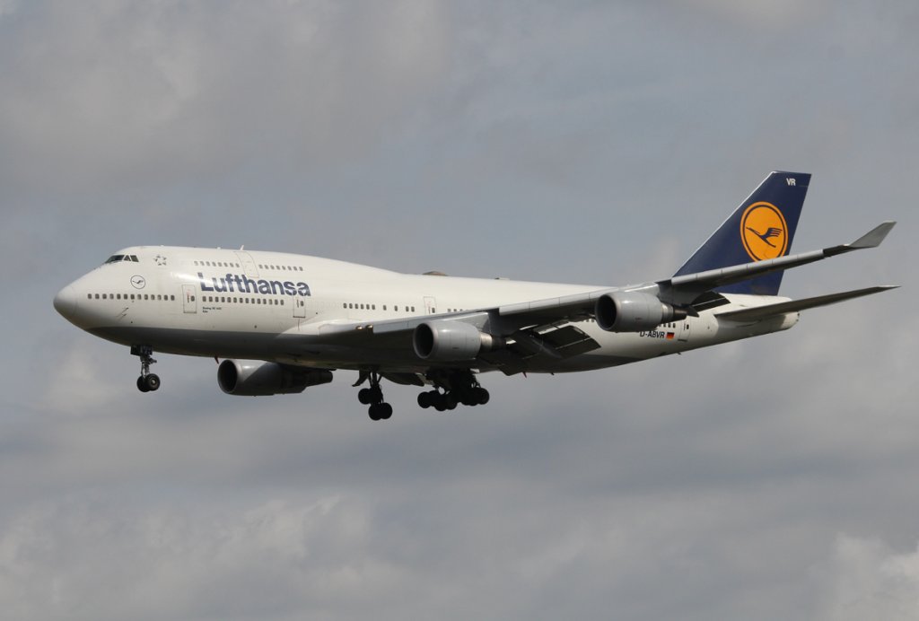 Lufthansa B 747-430(M) D-ABTH "Duisburg" bei der Landung in Frankfurt am Main am 16.08.2012