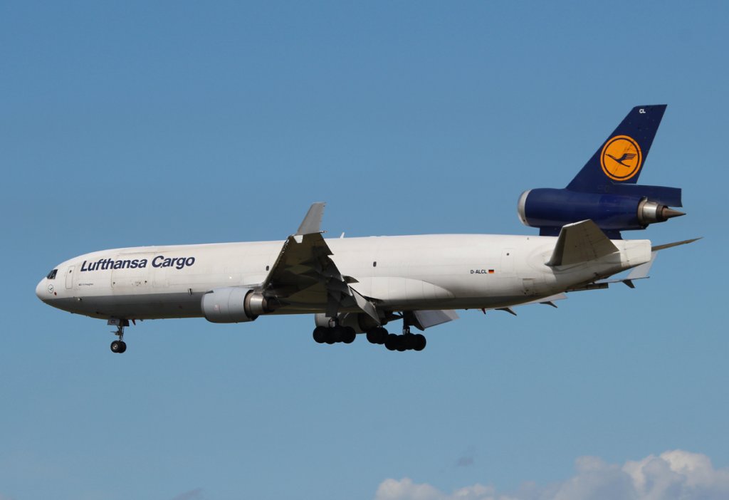 Lufthansa Cargo MD-11F D-ALCE bei der Landung in Frankfurt am Main am 16.08.2012