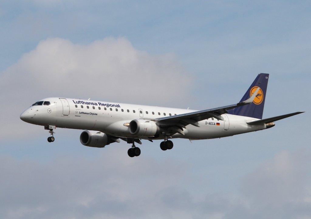 Lufthansa Regional (CityLine) Embraer ERJ-190-100LR D-ACEA bei der Landung in Frankfurt am Main am 16.08.2012