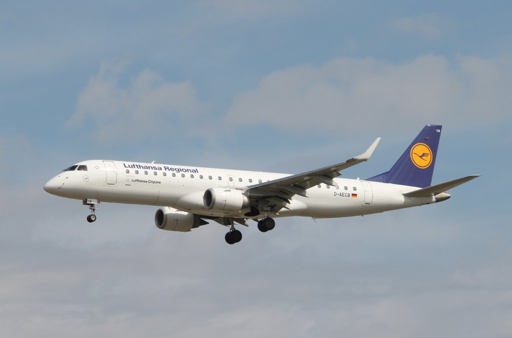 Lufthansa Regional(CityLine) ERJ-190-100LR D-AECB bei der Landung in Frankfurt am Main am 16.08.2012