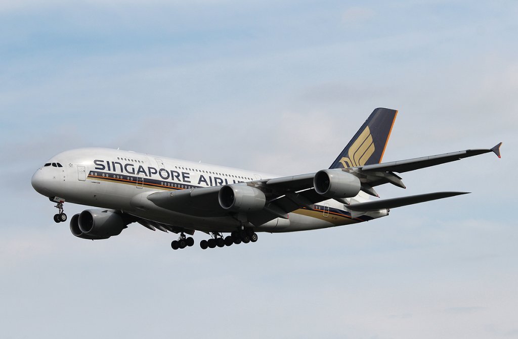 Singapore Airlines A 380-841 9V-SKF bei der Landung in Frankfurt am Main am 16.08.2012