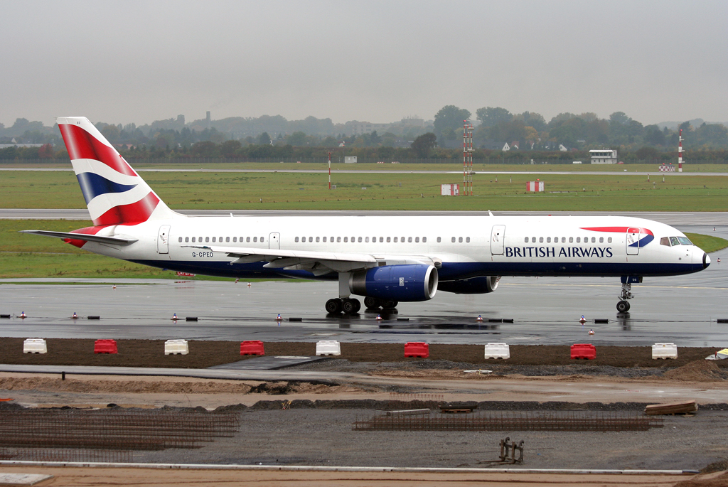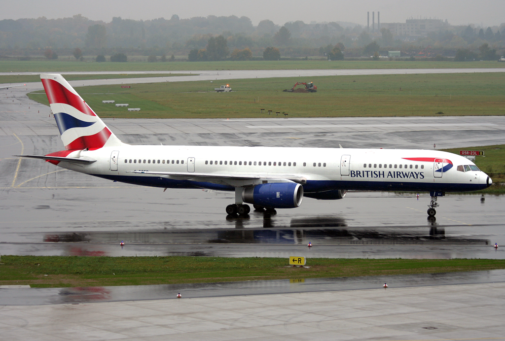 British B757-200 G-BPEO verlässt die 23L in DUS / EDDL / Düsseldorf am 08.10.2008