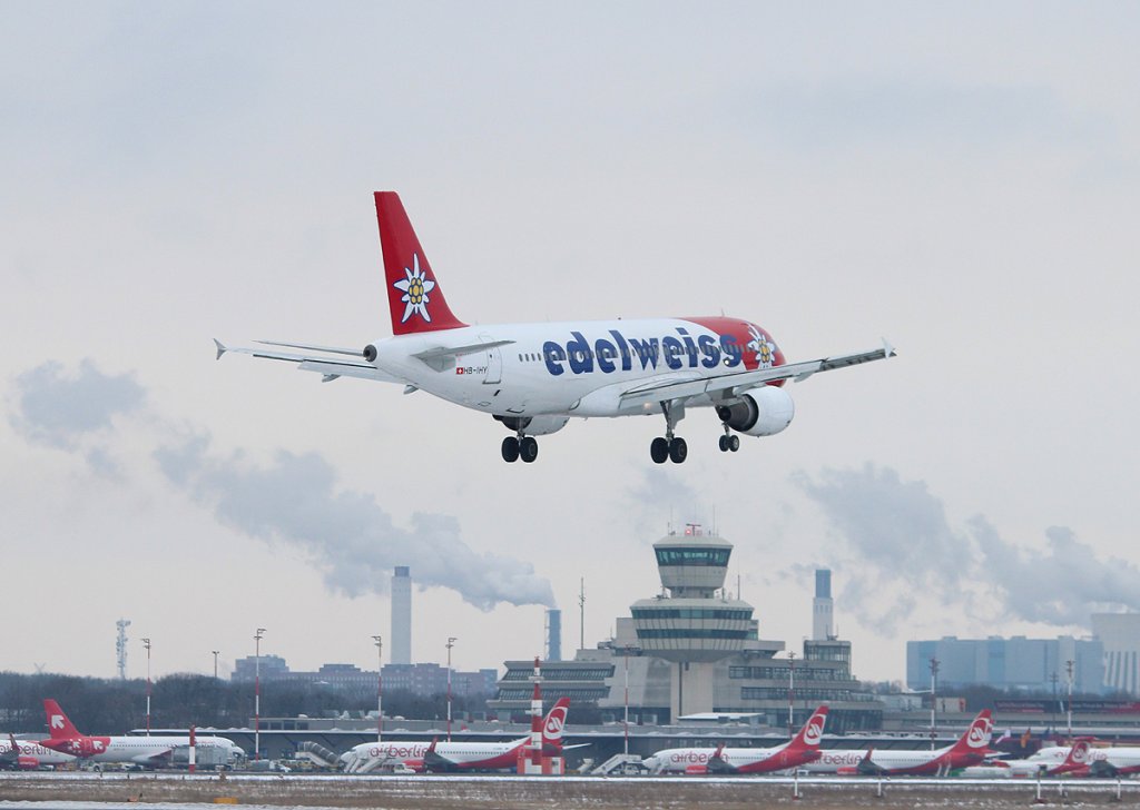 Edelweiss Air A 320-214 HB-IHY bei der Landung in Berlin-Tegel am 01.04.2013