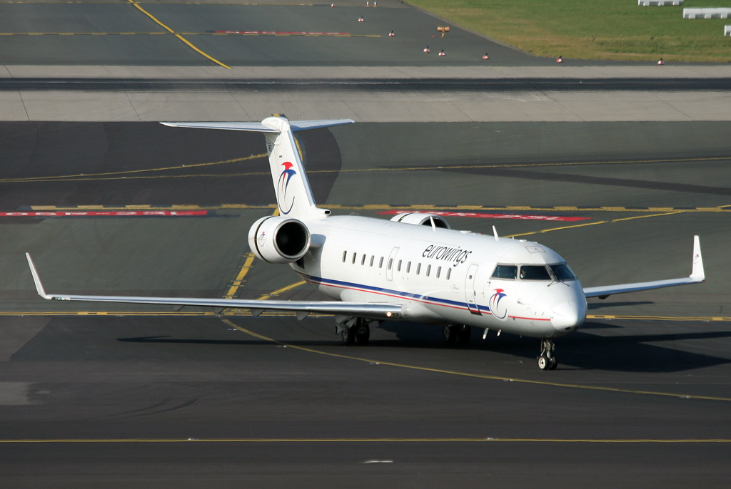 Eurowings CRJ200 D-ACRG verlässt die 05R und rollt auf dem Taxiway zum Vorfeld in DUS am 12.10.2008