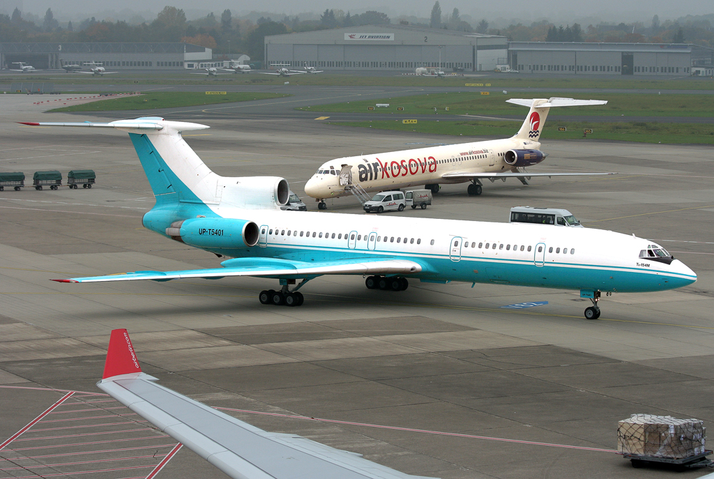 KAZ Air Tu-154M UP-T5401 rollt zur 23L in DUS / EDDL / Düsseldorf am 12.10.2008