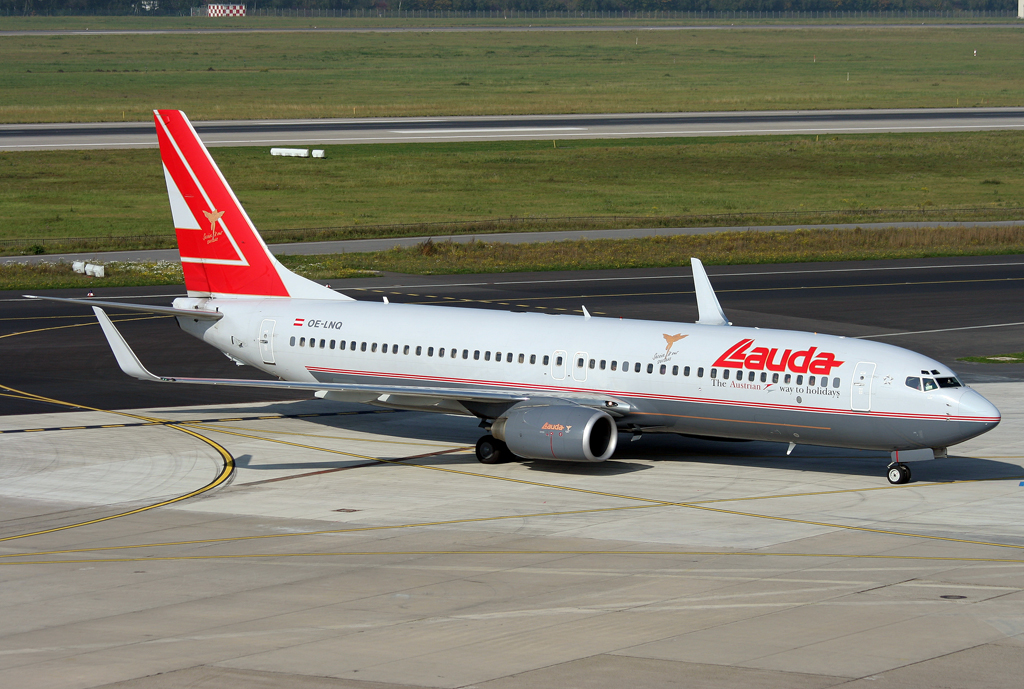 Lauda B737-800 OE-LNQ rollt zur 23L in DUS / EDDL / Düsseldorf am 12.10.2008