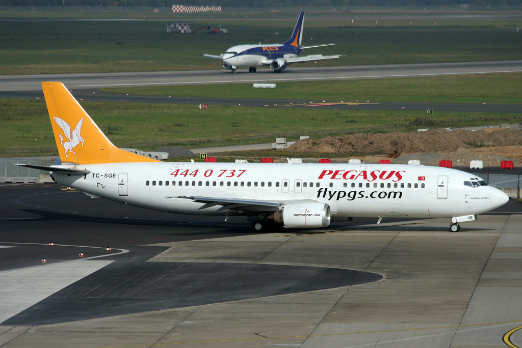 Pegasus / Saga B737-400 TC-SGE rollt zur 23L in DUS / EDDL / Düsseldorf am 12.10.2008