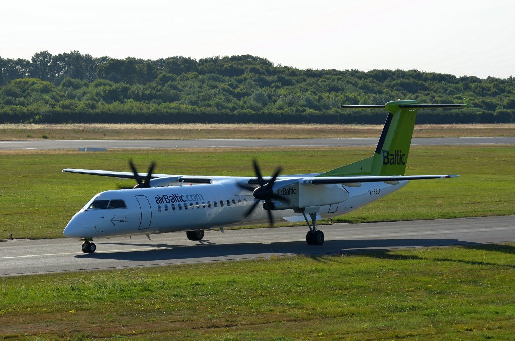 Die Air Baltic De Havilland Canada DHC-8 YL-BBU aufgenommen nach der Landung in Hamburg Fuhlsbüttel am 23.07.13