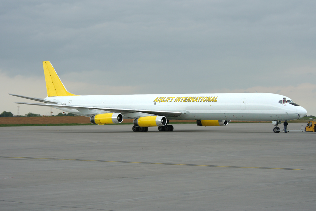 Airlift International DC8-63F beim Pushback in LGG / EBLG / Liege am 26.04.2009
