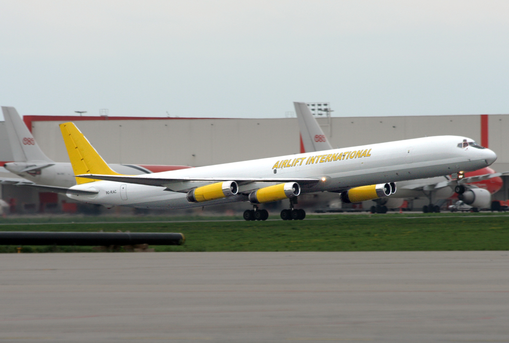 Airlift International DC8-63F beim Takeoff auf der 23 in LGG / EBLG / Liege am 26.04.2009