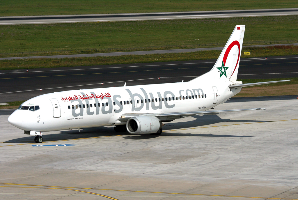 Atlas Blue B737-400 CN-RNA rollt zum Gate in DUS / EDDL / Düsseldorf am 20.09.2008