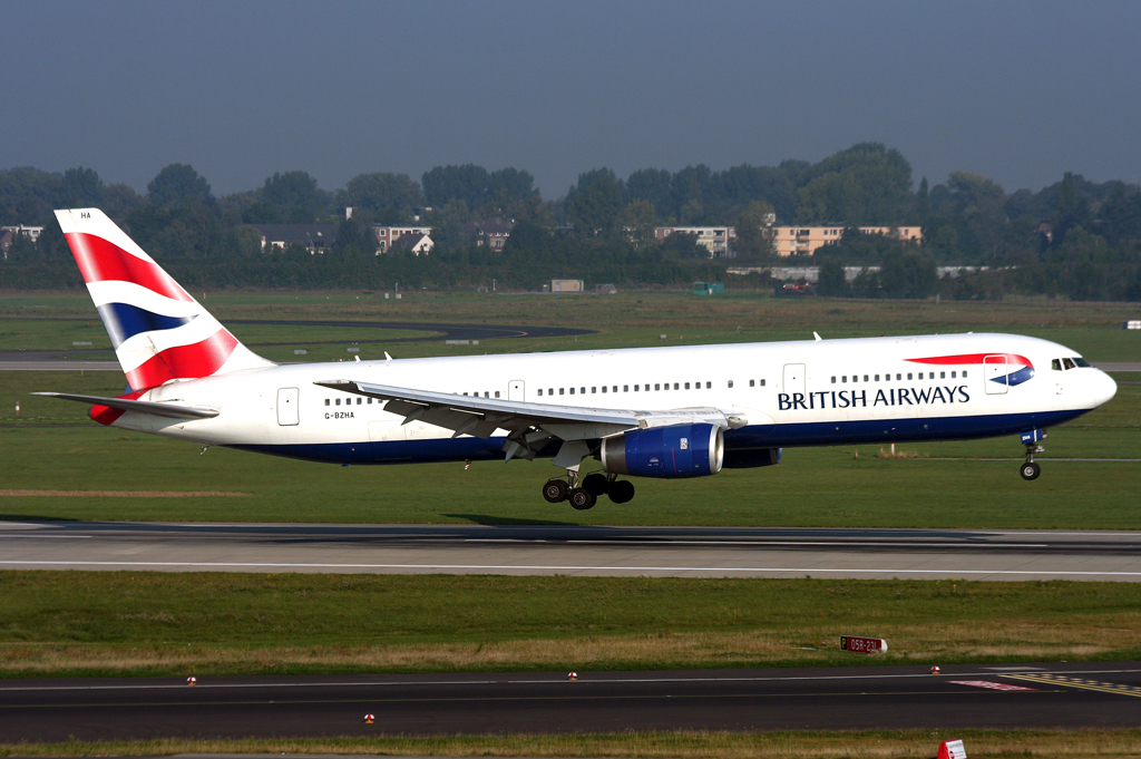 British B767-300 G-BZHA nach dem Takeoff auf der 05R in DUS / EDDL / Düsseldorf am 20.09.2008