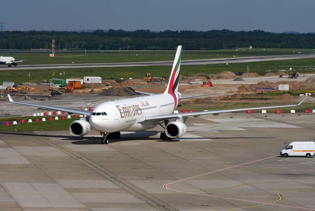 Emirates A330-200 A6-EAB rollt zum Gate in DUS / EDDL / Düsseldorf am 20.09.2008