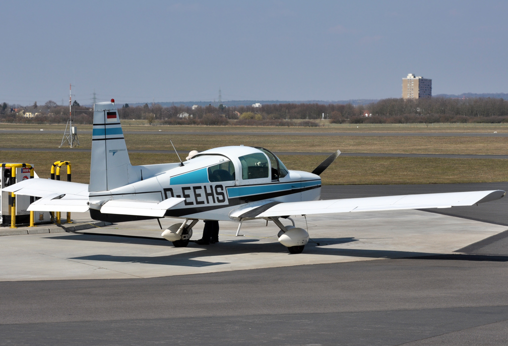 Grumman AA-5 Traveler, D-EEHS, Tankstelle am Flugplatz Bonn-Hangelar - 07.04.2013