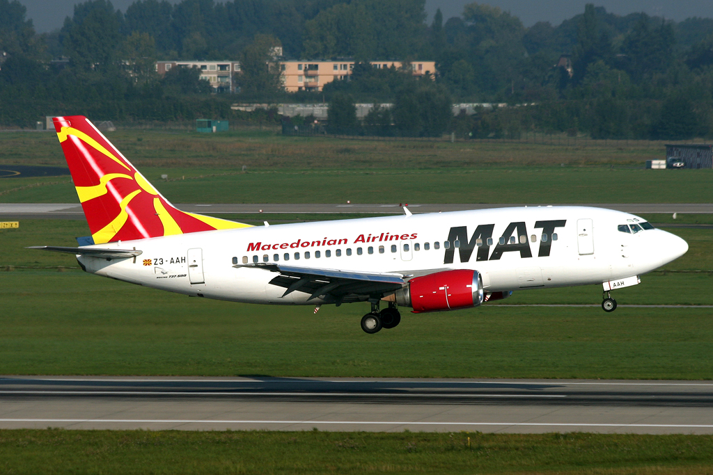 MAT B737-500 Z3-AAH kurz vor der Landung auf der 05R in DUS / EDDL / Düsseldorf am 20.09.2008