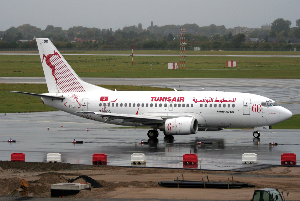 Tunisair B737-500 TS-IOG rollt zur 23L in DUS / EDDL / Düsseldorf am 05.10.2008