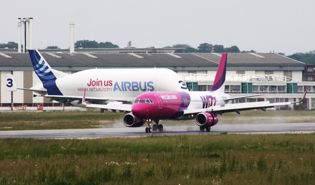 Airbus Transport International,F-GSTC,(c/n765),Airbus A300B4-608st,13.06.2013,XFW-EDHI,Hamburg-Finkenwerder,Germany(links Wizzair,Reg.HA-LWV)
