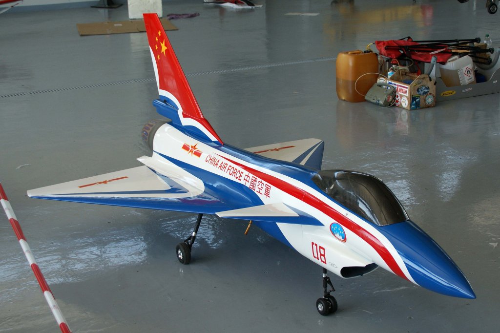 08, J-10 Fighter / Chengdu J-10 (China Air Force), 40-Jahre Jubiläums-Airmeeting des DMFV (Deutscher Modellflieger Verband) auf dem Flugplatz der Fa. "GROB AIRCRAFT" am 07.07.20