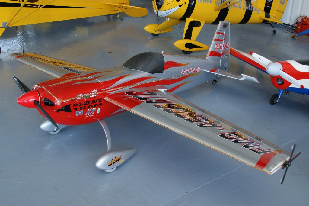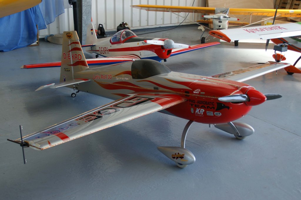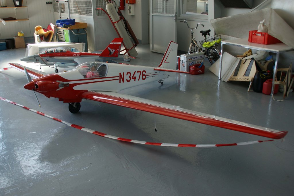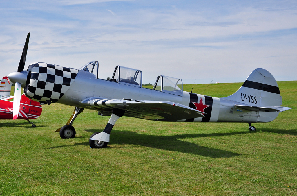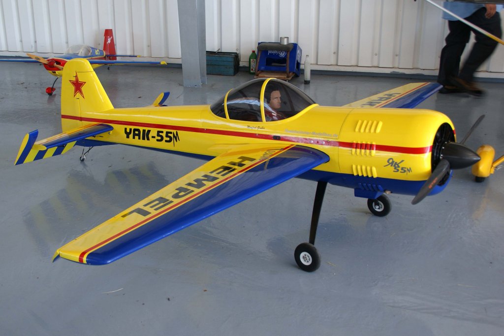 ohen, Yakovlev "Yak-55", 40-Jahre Jubiläums-Airmeeting des DMFV (Deutscher Modellflieger Verband) auf dem Flugplatz der Fa. "GROB AIRCRAFT" am 07.07.20