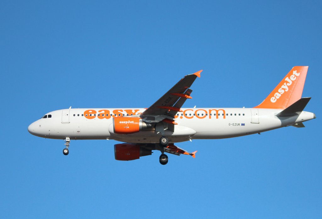 Easyjet A 320-214 G-EZUK bei der Landung in Berlin-Schönefeld am 13.10.2012