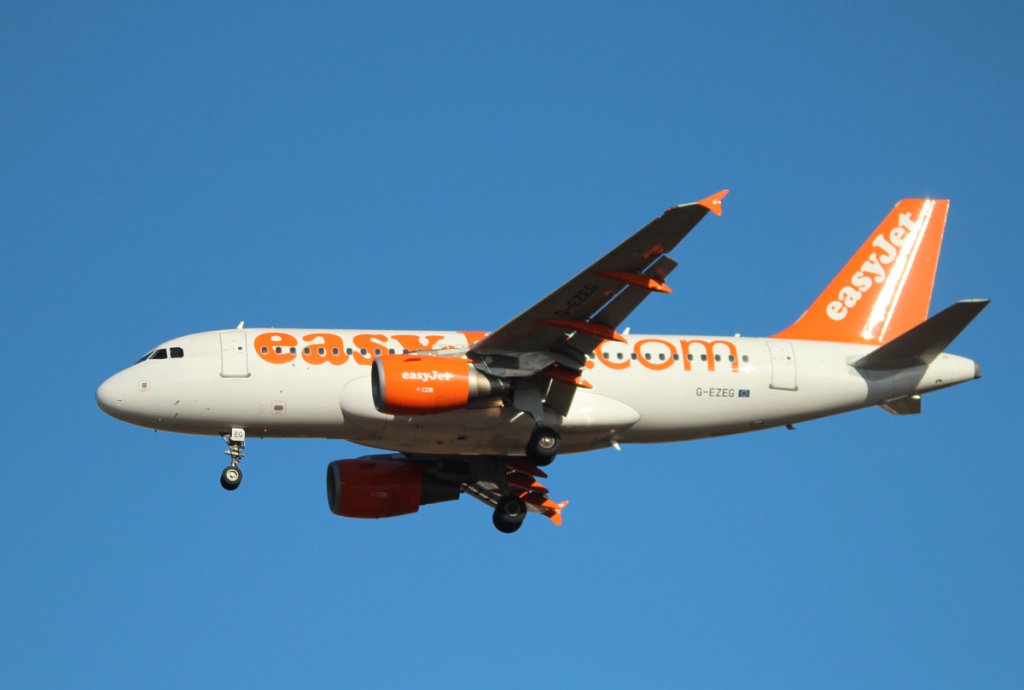 Easyjwt A 319-111 G-EZEG bei der Landung in Berlin-Schönefeld am 13.10.2012