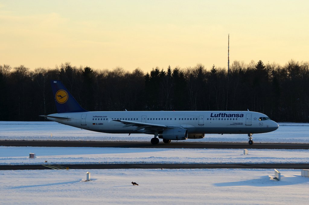 Gut das der Fuchs nicht vor dem in Hamburg Startenden Lufthansa Airbus A321-100 D-AIRH Garmisch-Partenkirchen auf die Startbahn gelaufen ist aufgenommen am 12.03.13