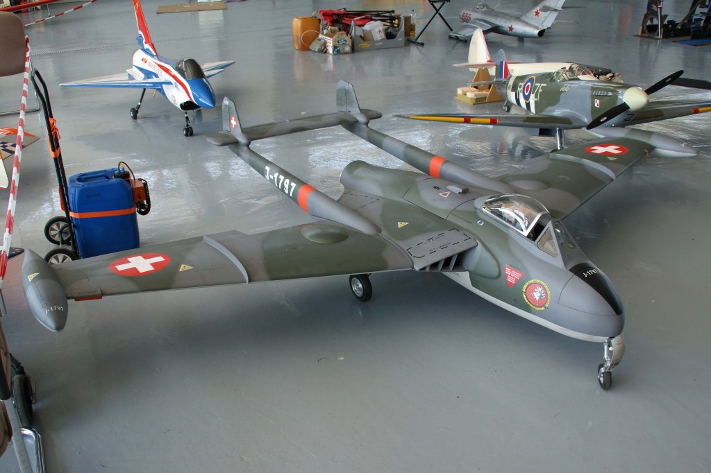 J-1797, DeHavilland "DH-112" (Venom FB-54 ~ Swiss Air Force), 40-Jahre Jubiläums-Airmeeting des DMFV (Deutscher Modellflieger Verband) auf dem Flugplatz der Fa. "GROB AIRCRAFT" am 07.07.20