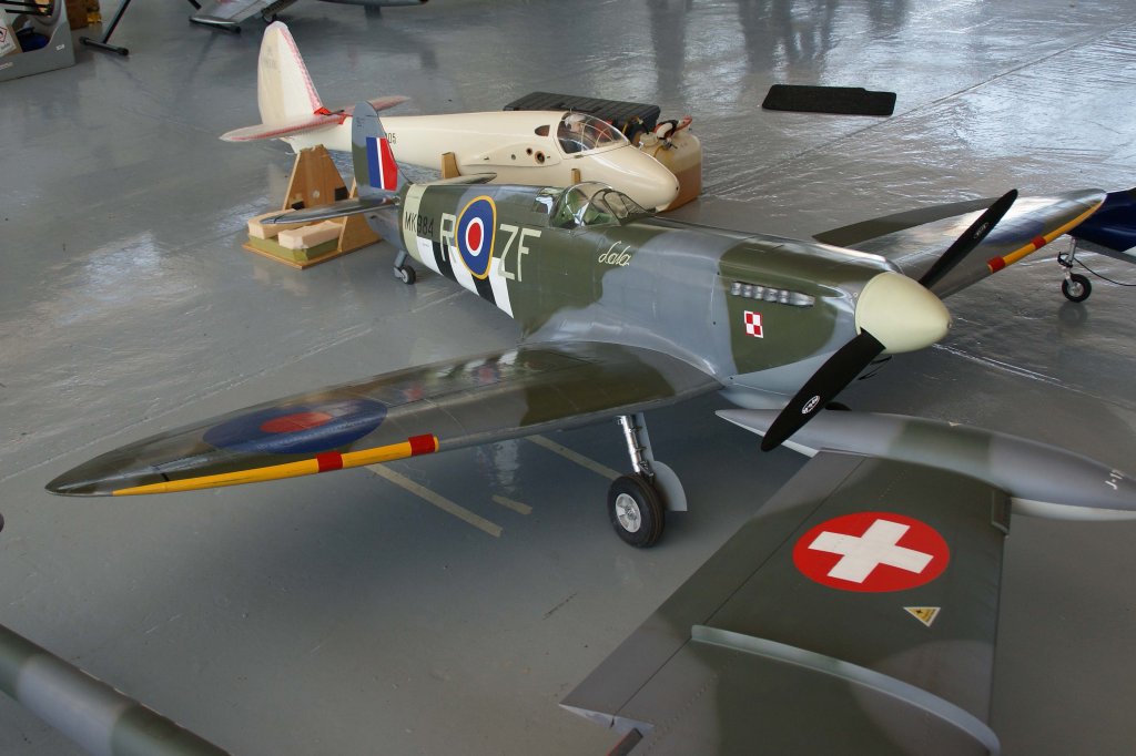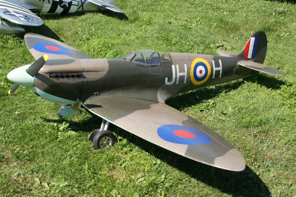 JH-H ADI 40, Spitfire Mk I (Forces francaise libres), 40-Jahre Jubiläums-Airmeeting des DMFV (Deutscher Modellflieger Verband) auf dem Flugplatz der Fa. "GROB AIRCRAFT" am 07.07.2012