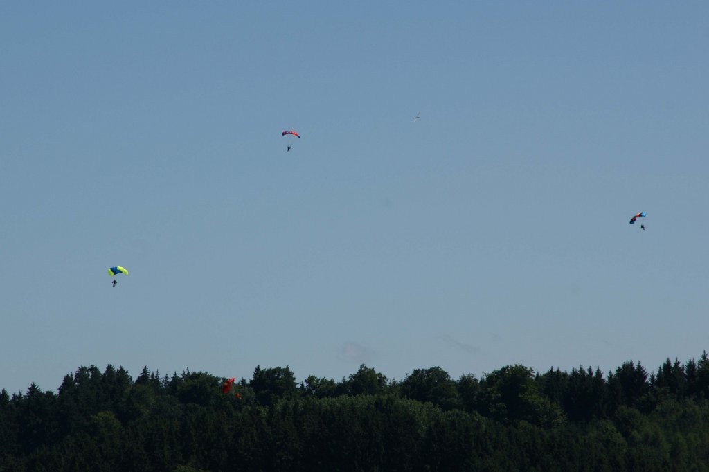 Französische, belgische und deutsche Fallschirmjäger übten zwischen dem 23. und 25 August über Wallerfangen - Düren.