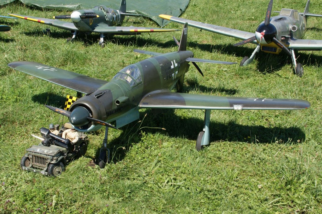 ohne, Messerschmitt Bf.109, 40-Jahre Jubiläums-Airmeeting des DMFV (Deutscher Modellflieger Verband) auf dem Flugplatz der Fa. "GROB AIRCRAFT" am 07.07.2012