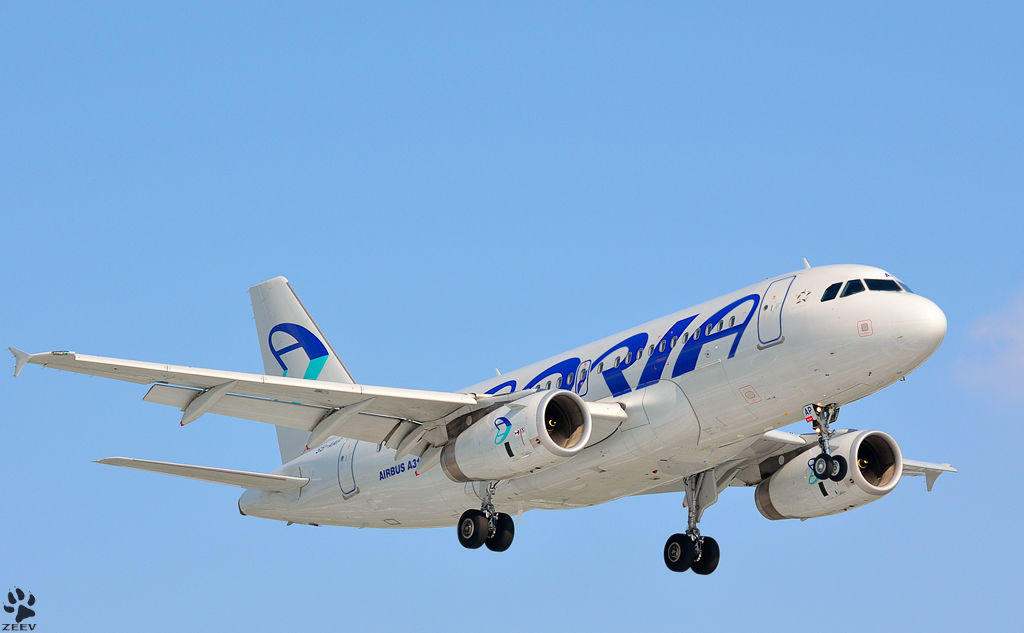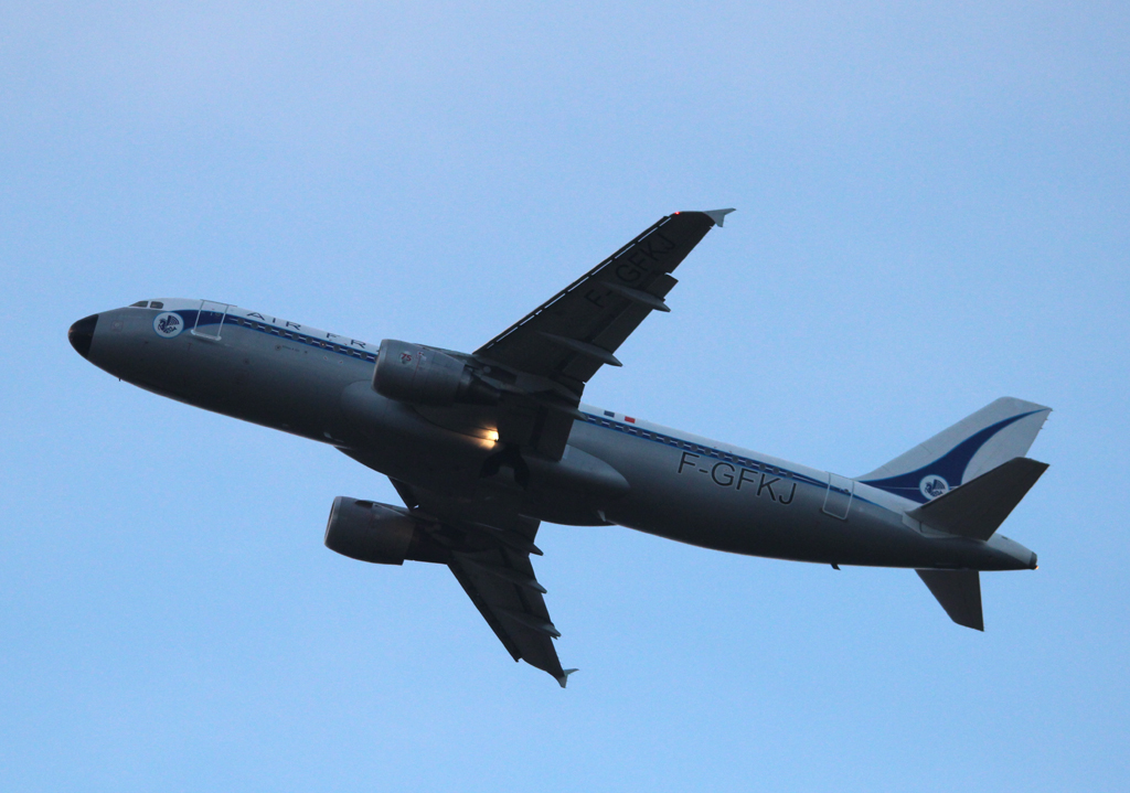 Air France Retro A 320-211 F-GFKJ beim Start in Berlin-Tegel am frühen Morgen des 10.11.2012