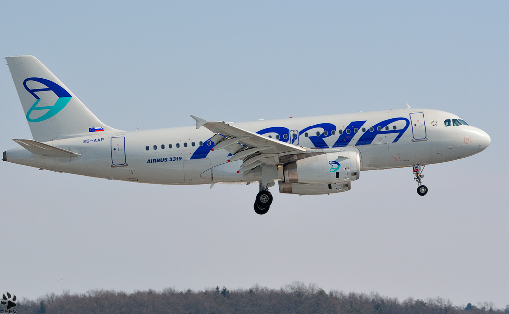 ADRIA S5-AAP, Airbus A319-132 bei Trainingsflug; Maribor Flughafen MBX. /16.3.2013