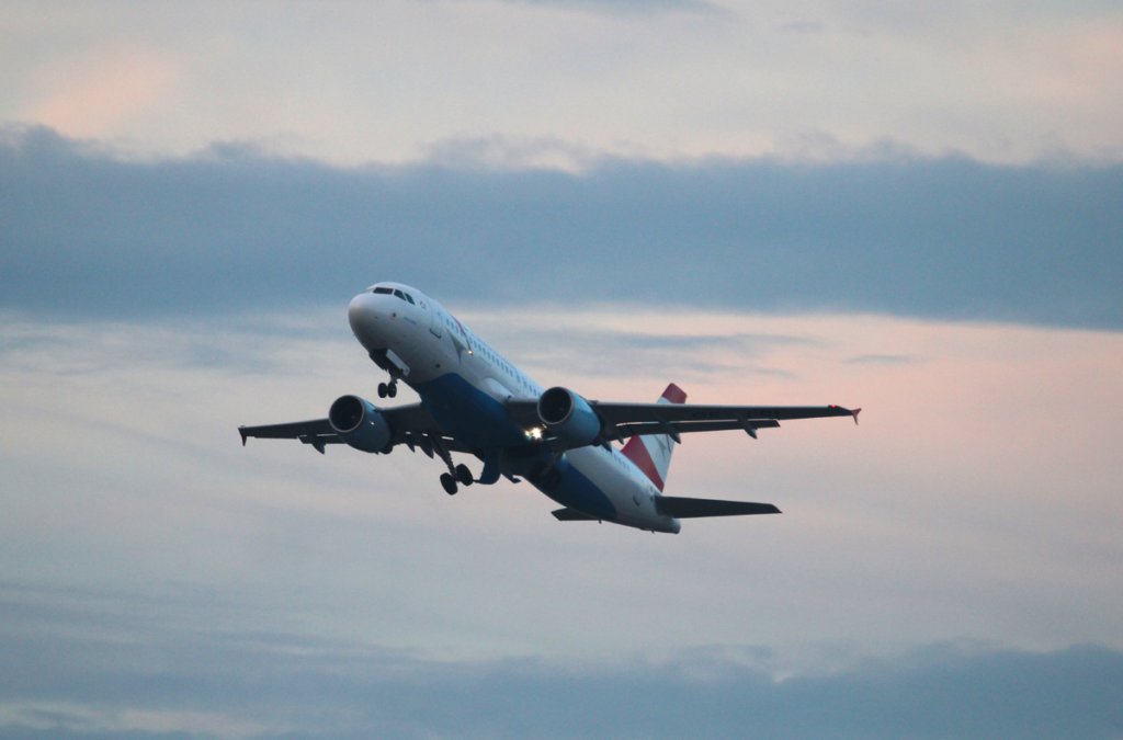 Austrian Airlines A 320-214 OE-LBI beim Start in Berlin-Tegel am frühen Morgen des 10.11.2012