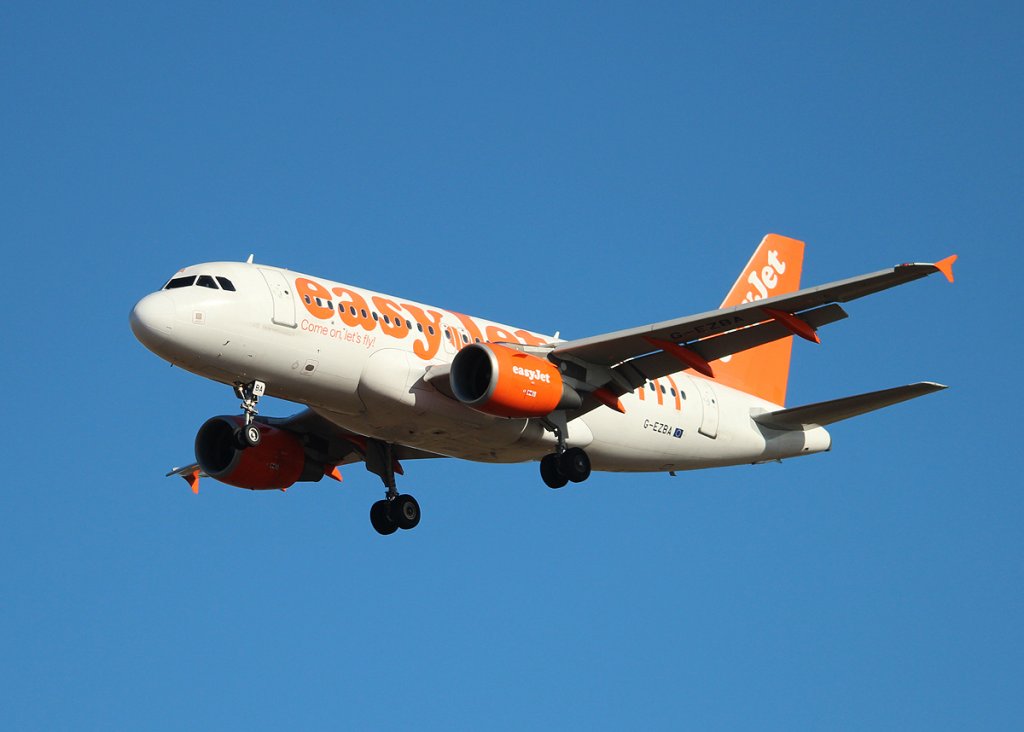 Easyjet A 319-111 G-EZBA bei der Landung in Berlin-Schönefeld am 13.10.2012