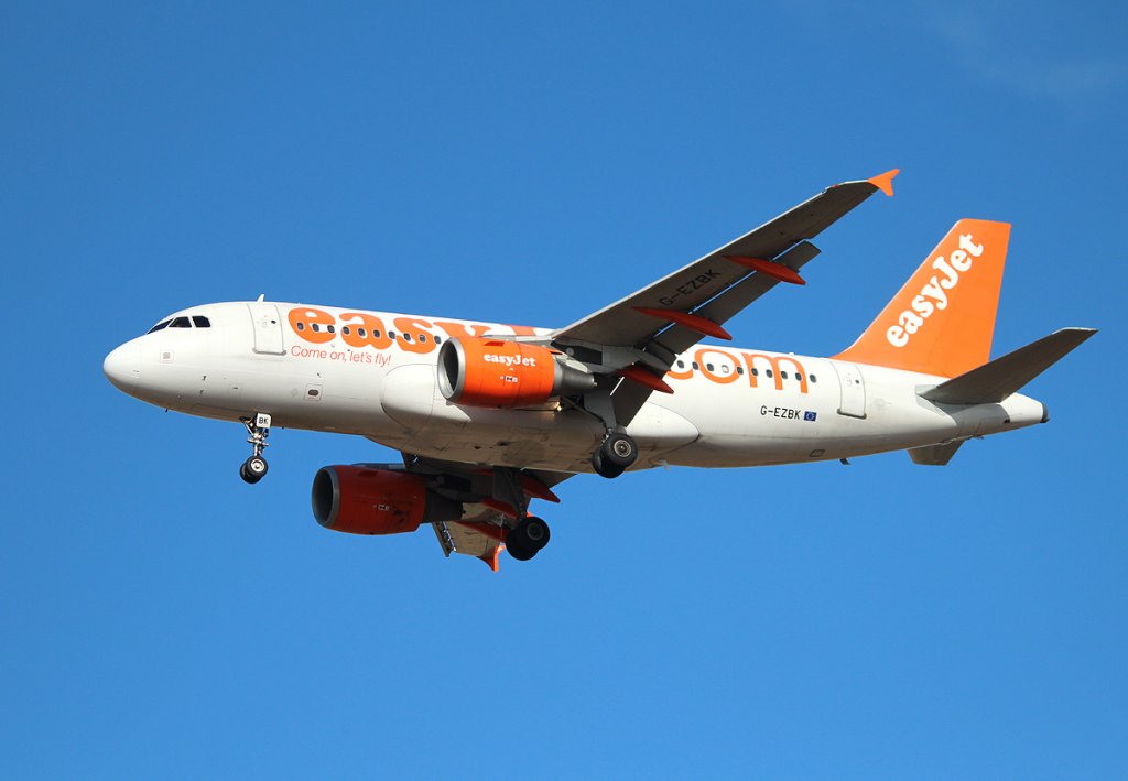 Easyjet A 319-111 G-EZBK bei der Landung in Berlin-Schönefeld am 13.10.2012