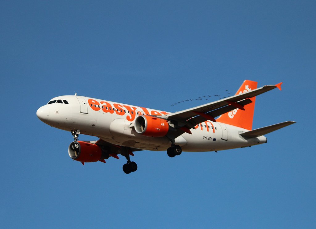Easyjet A 319-111 G-EZFF bei der Landung in Berlin-Schönefeld am 13.10.2012