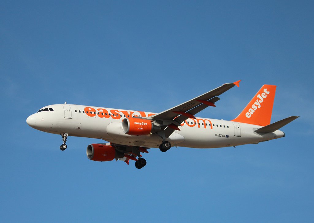 Easyjet A 320-214 G-EZTD bei der Landung in Berlin-Schönefeld am 13.10.2012