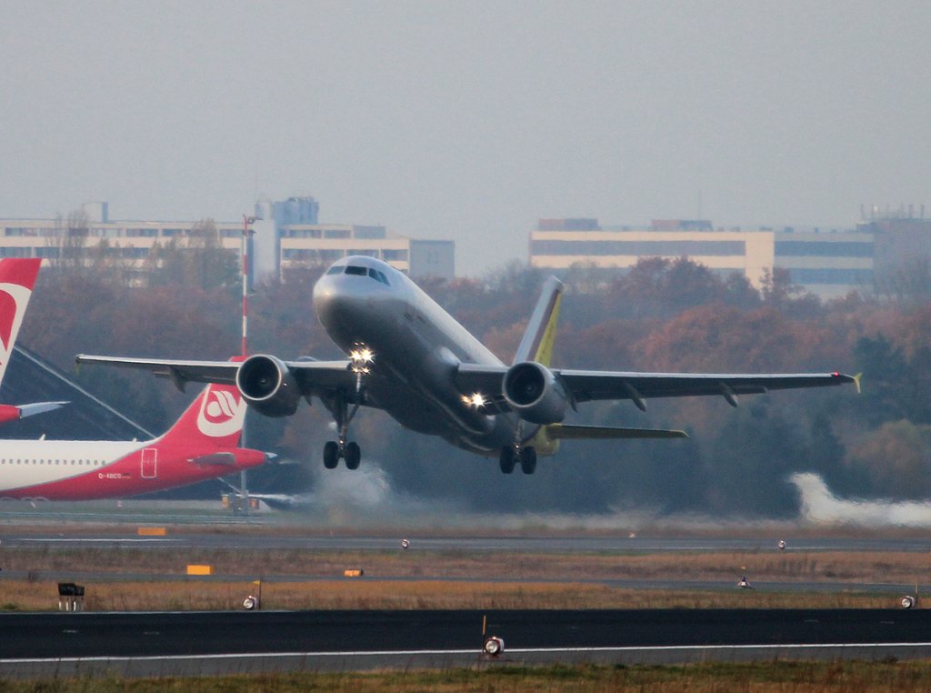 Germanwings A 319-112 D-AKNO beim Start in Berlin-Tegel am 10.11.2012