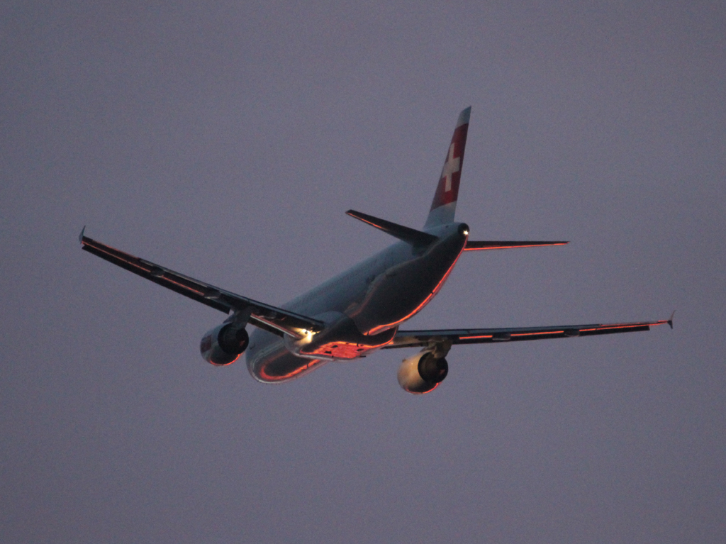 Swiss A 320-214 HB-IJP beim Start in Berlin-Tegel am frühen Morgen des 10.11.2012