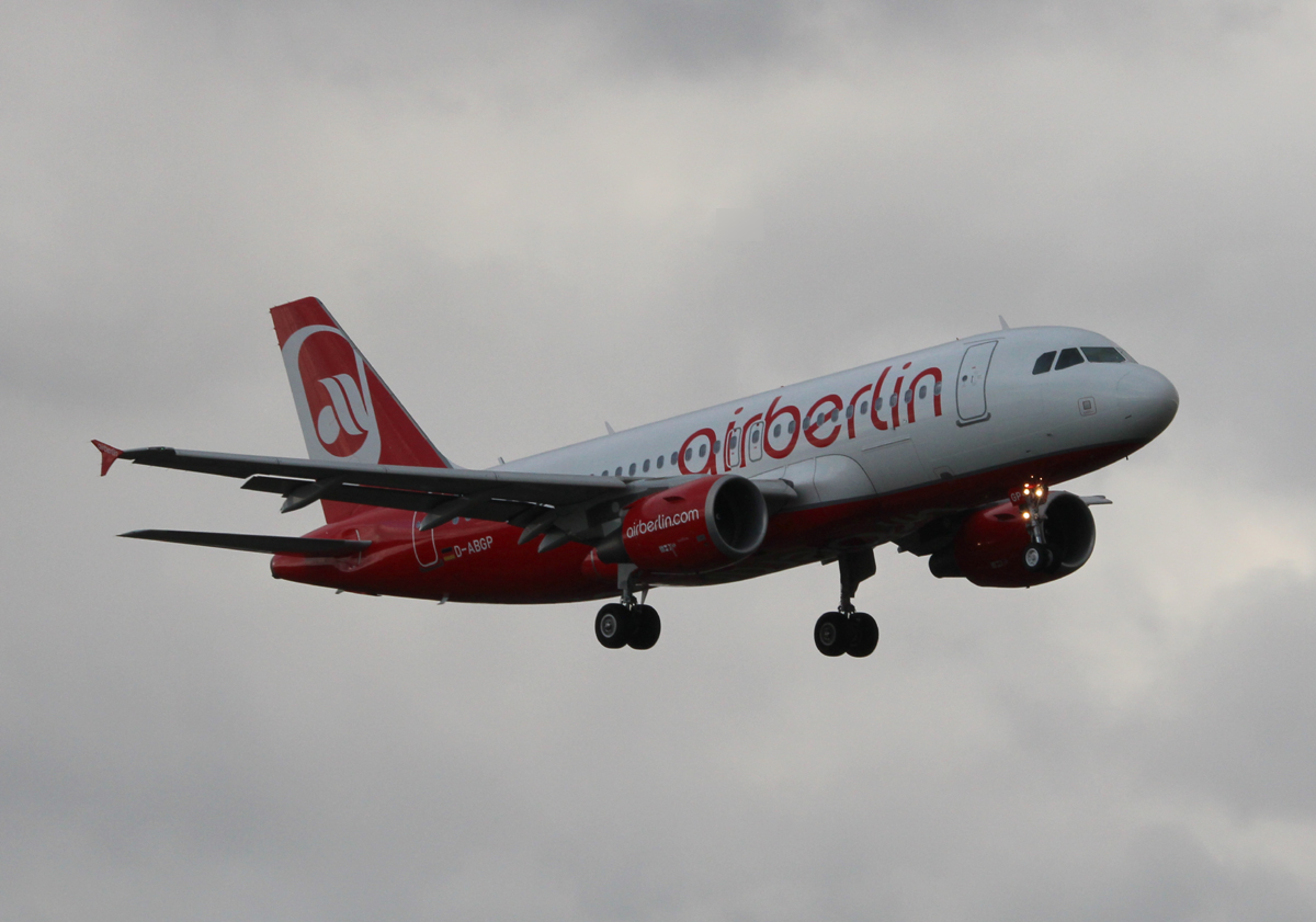 Air Berlin A 319-112 D-ABGP bei der Landung in Berlin-Tegel am 09.11.2013