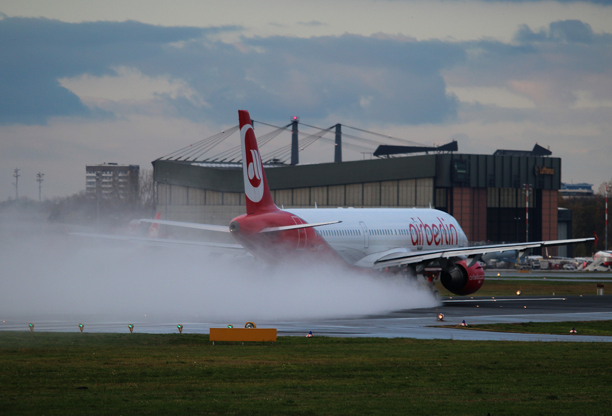 Air Berlin A 320-214 D-ABNB bei der Landung in Berlin-Tegel am 09.11.2013