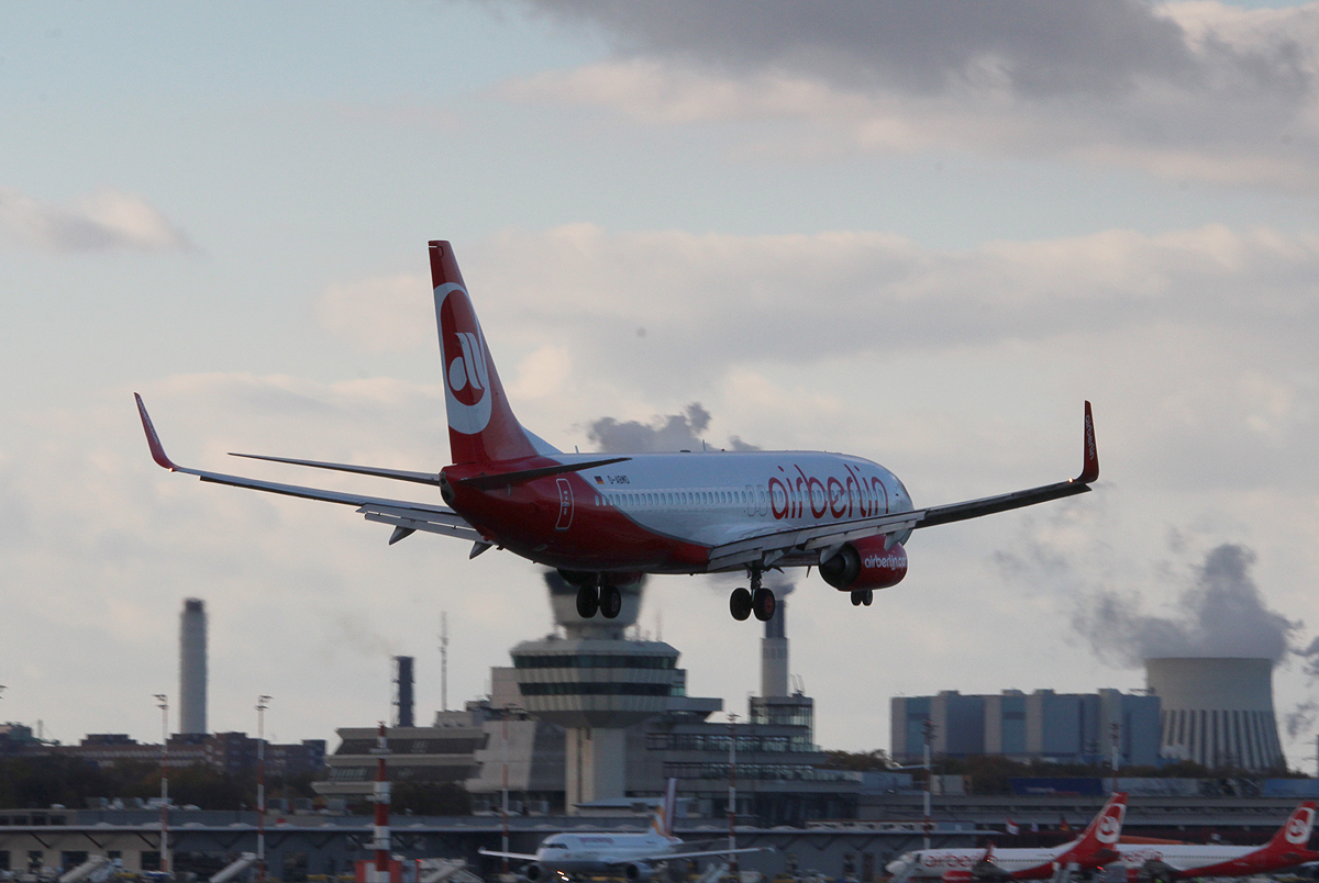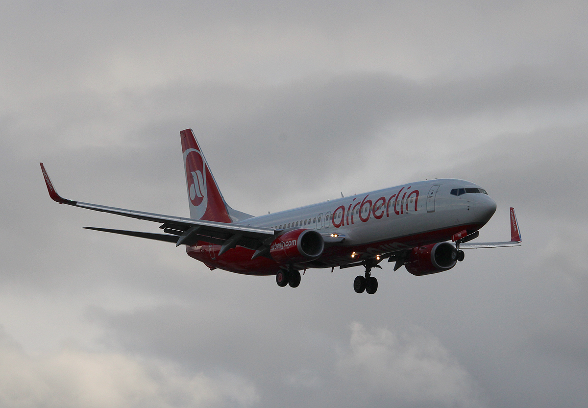 Air Berlin B 737-86J D-ABMK bei der Landung in Berlin-Tegel am 09.11.2013