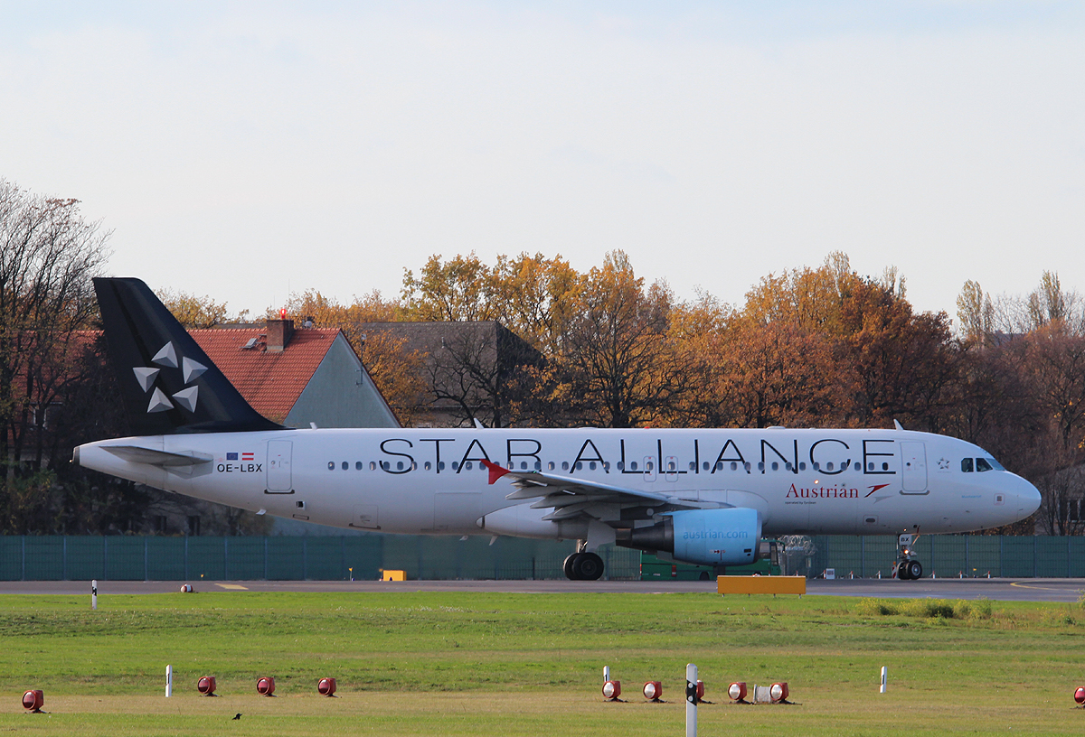 Austrian Airlines A 320-214 OE-LBX kurz vor dem Start in Berlin-Tegel am 09.11.2013